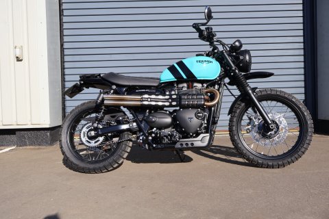 A fantastic opportunity to own a beautifully customised Triumph Scrambler 900 (2025) with just 941 miles on the clock. Finished in striking Kingfisher Blue and Black, this bike combines classic Scrambler styling with a carefully selected range of premium upgrades.